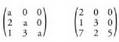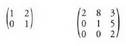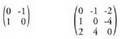 Adibideak:Matrize eskalarra diagonaleko elementu guztiak berdinak dituen matrize diagonala da.• Adibideak :8. Goiko triangelu matrizea diagonal nagusiaz goitiko elementu guztiak baliogabeak dituen matrize karratua da.• Adibideak:9. Beheko triangelu matrizea diagonal nagusiaz behetiko elementu guztiak baliogabeak dituen matrize karratua da.• Adibideak:10. Matrize simetrikoa.; duen matrize karratuari deitzen zaio horrela, alegia, diagonal nagusiarekiko toki simetrikoetan dauden elementuak berdinak direnean.• Adibideak:11. Matrize antisimetrikoa.; duen matrize karratuari deitzen zaio horrela. Ondorioz, matrize antisimetriko baten diagonal nagusia zeroz osatua dago.• Adibideak :Matrize antisimetrikoei hemisimetrikoak ere deitzen zaie.12. Matrize laukizuzena lerro eta zutabe kopuruak desberdinak dituena da.• Adibideak:13. Matrize iraulia. A matrizea harturik, lerroak eta zutabeak tokiz aldatzean lortzen denari deitzen zaio A-ren matrize iraulia etaidazten da. A-ren lehen lerroa-ren lehen zutabea da, A-ren bigarren lerroa-ren bigarren zutabea, e.a.• Adibideak :Matrize irauliaren definiziotik ondorioztatzen da A-ren diment- sioak m x n baldin badira,-renak n x m direla.Lerro matrizebaten matrize iraulia, beraz zutabe matrizea da, eta alderantziz.14. Aurkako matrizea. A matrizearen aurkakoa, A-ren elementu guztiei zeinua aldatzean lortzen den -A matrizea da. Alegia, -A matrizearen elementuak A matrizearen elementuen aurkakoak dira.• Adibideak :15. Azpimatrizea. m x n dimentsiotako A matrizearenazpimatrizea, A matrizetik p lerro eta q zutabe ezabatuta lortzen dena da. Azpimatrizearen dimentsioak izango dira (m-p) x (n-q).• Adibideak :