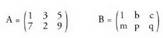 Kokaera berdina duten bi matrizetako elementuak berdinak badira, matrizeak berdinak direla esaten da. Bi matrize berdinek, gainera, dimentsioak ere hala dituzte.• Adibideak: