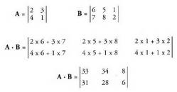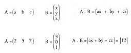 Baldin (x,y) eta-ren bi bektore badira, biderkadura eskalarra honela definitzen da :.-ren bektoreen kasuan horrela definituko litzateke :Biderkadura eskalarra definituko bada, bektore edo lerro matrizeek elementu kopuru berbera izan behar dute.Era berean, ondorengo adierazpenaren bidez ere defini daiteke lerro matrize baten eta zutabe matrize baten biderkadura :