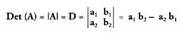 Bigarren mailakomatrize karratua emanik,zenbaki errealari deitzen zaio A-ren determinantea eta det (A),edo D adierazten da.Matriz karratu baten determinantea diagonal nagusiko elementuen biderkadurari bigarren diagonaleko elementuen biderkadura kenduta lortzen da.• Adibideak: