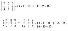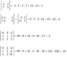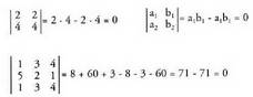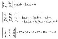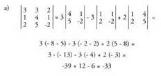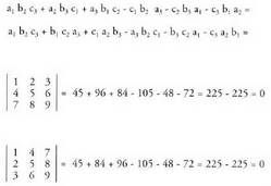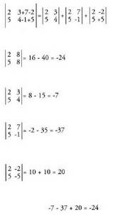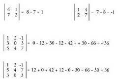 1. Ekuazioen ebazpena. Atal honen azken zatian aztertzen da.2. Kalkulatu zuzen bateko bi punturen arteko D distantzia.Izan bitezetazuzen batean kokatutako bi punturen abszisak ; D ondoko formulak emango du :3. Triangeluaren area hiru punturen determinantearen bidez.Izan bitezplano batean kokatutako hiru puntuak; arearen balioa ondorengo formulak emango du :4. Tetraedroaren bolumena lau punturen determinantearen bidez.Izan bitezetaespazioan kokatutako lau puntuak ; tetraedroaren bolumena ondorengo formulak emango du :