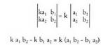 Determinante bat ez da aldatzen lerroak eta zutabeak (euren artean) tokiz aldatzen badira. Beste modu batean esanda, matrize jakin baten matrize irauliaren determinantea, hasierako matrizearen determinantearen berdina da.2. Determinante baten bi lerro edo bi zutabe euren artean tokiz aldatzen badira, determinante berriak hasierako determinante- aren balio absolutu berbera izango du, baina aurkako zeinua.Adibideak :3. Lerro edo zutabe bateko elementu guztiak zenbaki batez biderkatzen badira, determinantea zenbaki berberaz biderkatua geratzen da.• Adibideak:4. Lerro edo zutabe bateko elementu guztiak zeroak badira, determinantea ere zero da:5. Determinante batek bi lerro edo bi zutabe berdinak baditu, determinantea baliogabea da.Determinante baten bi lerro edo bi zutabe proportzionalak badira, determinantea baliogabea da.7. Determinantearen lerro edo zutabe baten ordez, beste (lerro edo zutabe) batzuen arteko konbinazio lineala jartzen bada, determinantea ez da aldatzen.8. Determinante baten lerro edo zutabeetako bat, beste batzuen arteko konbinazio lineala bada, determinantea baliogabea da9. Baldin lerro edo zutabeetako bat batugai bat baino gehiagoz osatua badago, lerroak edo zutabeak zenbat batugai, beste horrenbeste determinanteren baturaren balioa izango du determinanteak.10. Lerro edo zutabe bateko elementuak bi batugaitan banatzen badira, determinantearen balioa, hasierako determinanteak bezainbat elementu dituzten bi determinanteren batura izango da.
