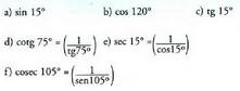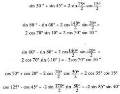 Irudiko triangeluan, adibidez, "a" aldea eta A eta C angeluak ezagutzen dira.B angelua kalkulatzen da 180°ko balioari A eta C angeluen balioa kenduta. B = 180 0 - ( A + C) eta XVII.2 atalean ikusia denez, sin B = sin (A + C).Sinuen teorema erabiliz, "b" kalkulatzen da :