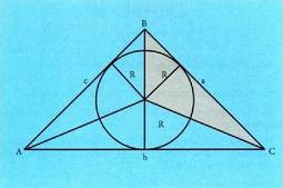 gelditzen da eta horietan R inskribatutako zirkunferentziaren erradioa,