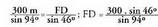 Sinuen teoremaren bitartez, FC eta FD kalkulatzen dira :