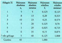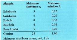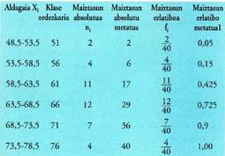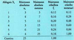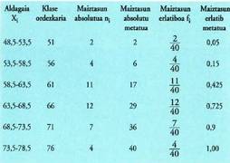 taulak eskaintzen ditu. Estatistika deskribatzailearen lehenengo