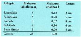 da estatistika :Estatistika deskribatzailea : lortutako emaitzak ordenatuta ematen