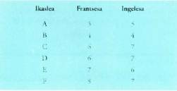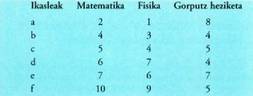 ikasle bakoitza banako bat izango litzatee test horretan. Kasu honetan