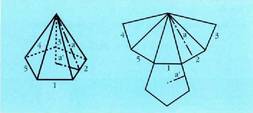 da. Beste poliedroa, QMS planoaz ebakiz, bi piramide