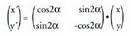 Geometria analitikoan,simetria ardatzaren ekuazioa emanda eta alde batetikzuzenaren norabide bektorea dela eta bestetik A zuzen horretako puntu bat dela jakinda, planoko P puntu baten simetrikoa aurkitzeko, P-tik igarotzen den eta r zuzenari buruz zuta den zuzena aurkitzen da. Perpendikular horrek ardatza ebakitzen duen M puntua aurkitzen da. Azkenik, P puntuaren simetrikoa denaurkitzen da,zuzenkiaren erdiko puntua izan behar duela baliatuz.Prozedura horrek ez du balio hasierako puntuaren koordenatuak jakinik puntu simetrikoaren koordenatuak emateko formula orokorra lortzeko, nahiz eta puntu simetrikoa aurkitzeko kasu guztietan balio duen prozedura soila izan.Hasierako puntuen eta simetrikoen koordenatuen artean dagoen erlazioa aurkitzeko, simetria ardatza jatorri puntutik igarotzen zaion erreferentzi sistema ortonormal bat hartzen da, edozein a inklinazioarekin. Norabide bektoreak, ardatzaren u banako modulua duenak, balio hau du :P planoko puntu bat bada etaharen simetrikoa,bektore banakoa denez, hau dugu:izan ere,zuzenkia simetria ardatzari buruz zuta baita etaetabektoreek modulu berbera baitute.Aurreko bektoreen batura, bi berdintzetan deskonposatzen da, koordenatu bakoitzarentzat banatan hain zuzen ere :Lehenengoanaskatu eta eragiketak eginda :Baina trigonometrian gauza jakina da :dela etaOrduan, hau gelditzen da :.- aren balioan ere antzeko eraldaketa batzuek eginda, hauek ateratzen dira :Matrize bitartez adierazita :Matrizeak A-ren det = -1 baldintza betetzen du eta simetrikoa da, hau da, berematrize irauliaren berdina