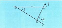 Bi biraketek zentro berbera baldin badute, konposizioa beste biraketa bat da, angelua angeluen batura duena eta eta zentroa beste biraketekin komuna duena. Bi zentroak desberdinak badira, emaitzaez da hain begibistakoa. Emaitza zein den ikusteko, aurreko kasuan bezalaxe, simetrietan deskonposatzen dira.etabiraketak baldin baditugu, bi biraketak, bi simetrietan deskonposa daitezke.biraketarentzat, bi ardatzak, O-n gurutzatu eta elkarren arteanangelua eratu behar duten bi zuzen dira.biraketarentzat, bi ardatzek- etik pasa eta bien arteanangelua eratu behar dute. Konposizioa ondorengoa bada :O-tik eta- etik igarotzen den zuzena hartzen da eta lehen biraketako bigarren simetriaren nahiz bigarren biraketako lehen simetriaren ardatz moduan jartzen. Hau da, bi biraketak definitzen dituzten simetriak hartzen dira ondoko baldintza hau betez :Simetria hori desagertu egingo da, izan ere, bere buruarekin konbinatzean, identitatea ematen baitu. Orduan, lehenengo biraketari dagokion lehen simetria eta azkeneko biraketari dagokion bigarren simetria geldituko dira. Bi zuzen horiekebakitzen dute elkar eta eratzen duten angeluakbalio du,triangelukoerpineko kanpoangelua delako eta horren ondorioz beste bi barneangeluenetabatura balio duelako.