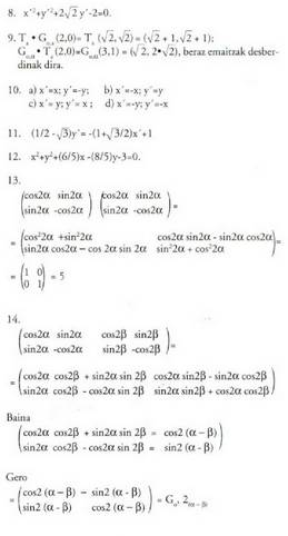 G.- Kalkulatubiraketak emango duen P(1,2) puntuaren eraldatua.7.- Kalkulatubiraketak emango duen x + 2y = 38.- Kalkulatubiraketak emango duenzirkunferentziaren eraldatua.9.- Egiazta ezazu, traslazioen bidezko biraketen biderkadura ez dela trukakorra,eta, P(2,0) puntuarentzat erabiltzeaneta