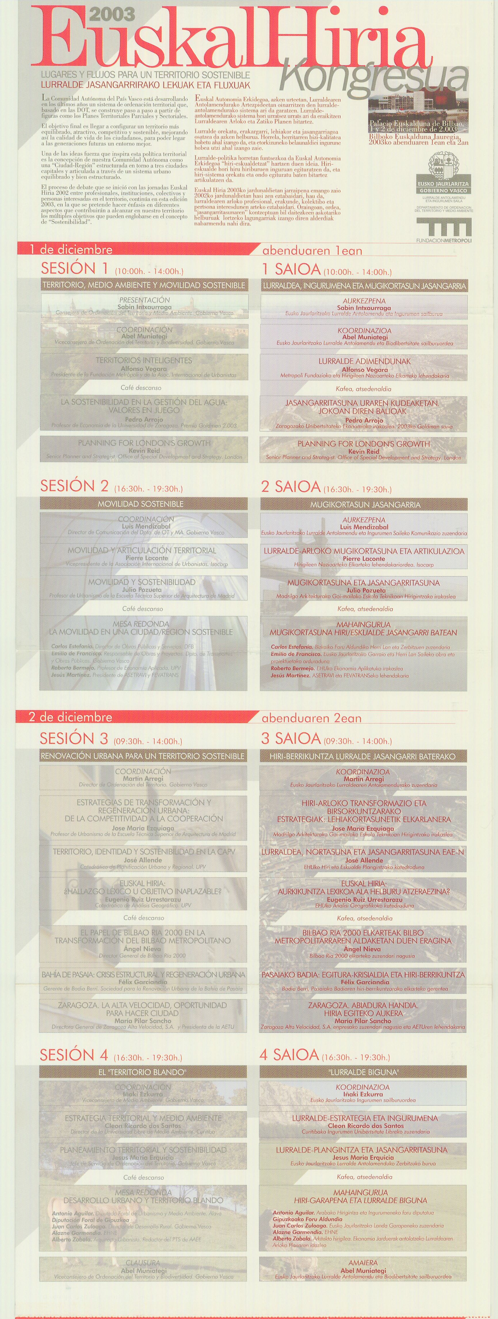 EuskalHiria 2003. Lugares y flujos para un territorio sostenible. Programa |