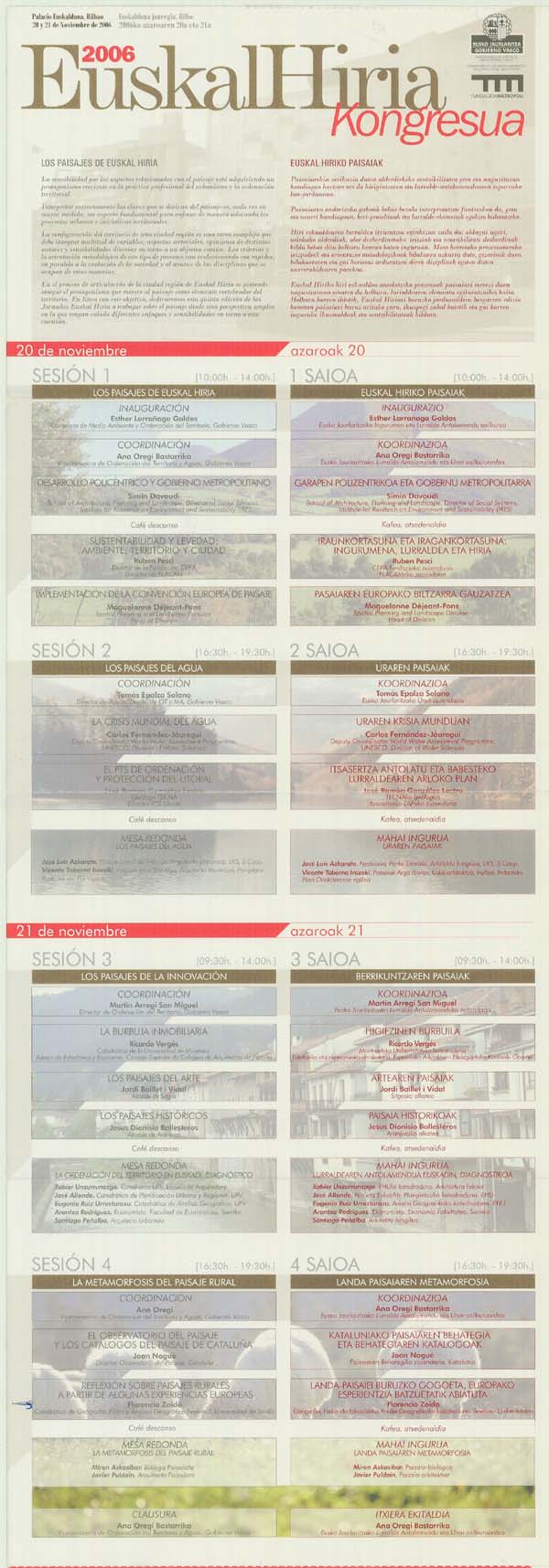 EuskalHiria 2006. Los Paisajes de Euskal Hiria. Programa. Ponencias |