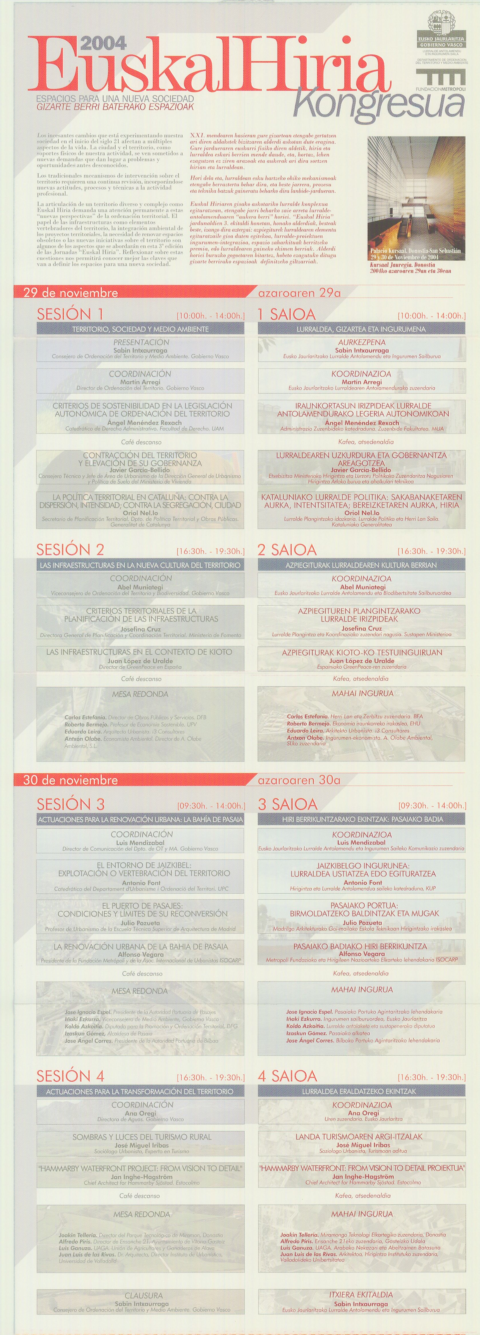 2004. EuskalHiria. Gizarte Berri Baterako Espazioak. Egitarauak |