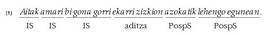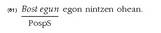 edo posposizio batez hornituak, alegia. Adibidez:(5) [Tabernariak] [astelehenetan] erosten ditu [edari guztiak].