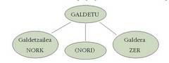 nolabait esateko, perpausean bete behar dira.Eman dezagun, adibidez, GALDETU aditza hartzen dugula. Honek
