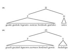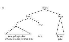 posposizioaz osatua. Aditzoinari eransten zaio posposizio hori:(83) a. Loreondo batek, lilia idek arau, hostoa galtzen du.. . Irabaz arau, jan.