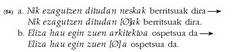 Goiko (1a) eta (1b)-ren artean zein diferentzia dagoen ikusi besterik