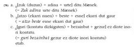 zuelaz).Hauek ere, hortaz, konpletiboak dira. Dena den, era honetako perpausak