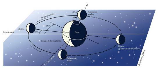 Ilargia Lurraren inguruan dabil biraka; 27,32 egun behar ditu bira osoa egiteko.