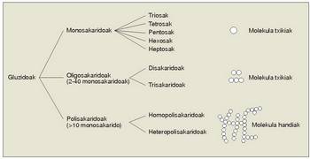 Izadian azukre mota asko egoteak gai mota horiek sailkatu beharra dakar. Sailkapen zabalduena karbonozko atomo kopuruarren araberakoa da, eta, 1. irudian ikusten den bezala, hiru multzo nagusitan banatzen diitu: monosakaridoak, oligosakaridoak eta polisakaridoak.