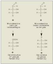 Monosakaridoek badute beste ezaugarri garrantzitsu bat: anbibalenteak dira agente oxidatzaileen edo agente erreduzitzaileen aurrean. Alegia, gai jakin bat ez bada monosakaridoa bezain oxidatzailea, monosakaridoa oxidatu egiten da, eta, aitzitik, gai bat monosakaridoa baino oxidatzaileagoa baldin bada, monosakaridoa erreduzitu egiten da (2. irudia).