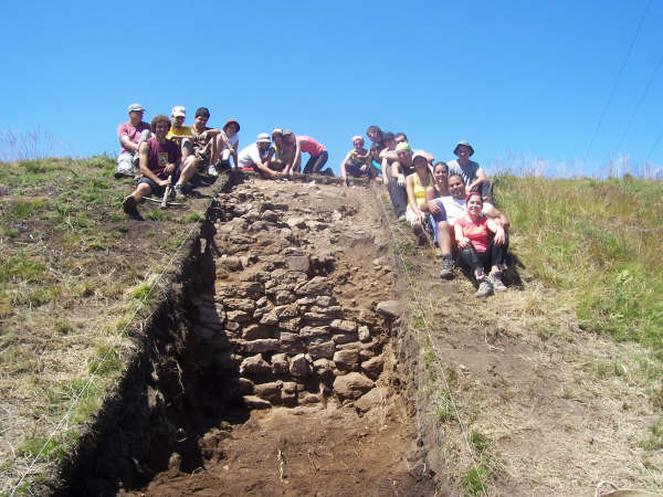 Aqui estamos trabajando en el Castro de Arrola, el trabajo era un poco duro (de pico y pala),pero con el buen ambiente que había se hacía muy llevadero. Y además, es muy agradable la satisfacción por el buen trabajo que realizamos todos. Las vistas desde el Castro eran incomparables.