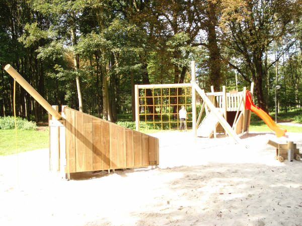 Nuestro tarea consistía en construir un parque para niños. La forma es de un barco que se està hundiendo y esta hecho de madera. Aquí se ve como lo montamos todo.