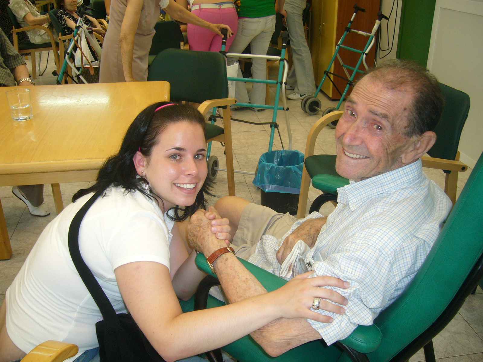 En esta foto salgo yo haciendo manualidades con un grupo de residentes.