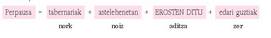 1 2 aditza 3Perpaus honetan aditzaz gainera beste hiru osagai ditugu. Horietako bakoitzak marka berezia darama, dagokion zereginaren arabera: Lehenbiziko osagaiak -K kasu marka darama: tabernaria + K. Marka horrek adierazten digu zein den osagai horrek aditzarekin duen erlazioa. Kasu honetan, badakigu subjektua dela, erosketaren egilea bera dela, etab.