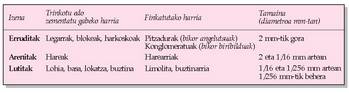 Haitz sedimentarioen sailkapena