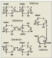 Gai elkartu horien artean, hauek dira biologiaren aldetik garrantzitsuenak (10. irudia): - Maltosa. Malta azukrea ere esaten zaio; garagar hartzituan (malta) egoten da, eta garagardoa, whiskya eta horrelako edari alkoholdunen hartziduretan erabiltzen da.