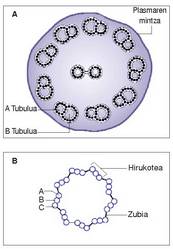 bederatzi mikrotubulu hirukotez (A, B eta