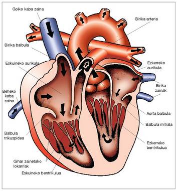 eta kapilarrak), eta bihotzak, zirkuitu horren ponpa gisa aritzen den organoak. Bihotza biriken
