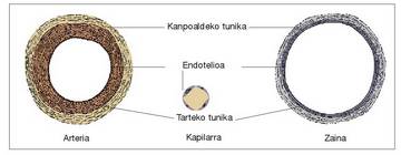 balbula batzuk daude. Arteriak eta zainak ehunezko hiru geruzek eratutako hodiak dira. Arterietako