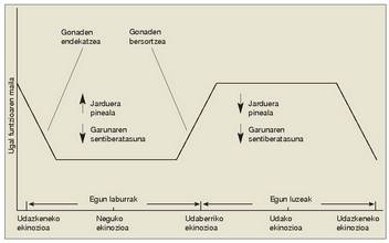 (fotoperiodoarekin, hain zuzen).Gauza jakina da loraldia egunaren iraupenaren