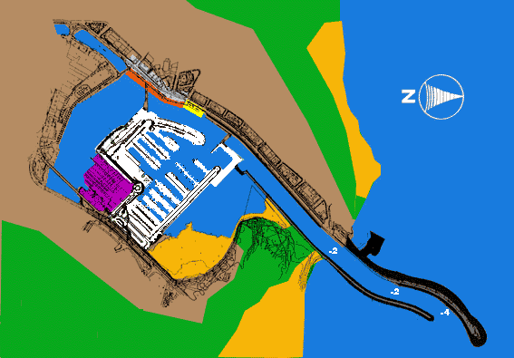 - Calado en B.M.V.E.: 3 m. Peligrosa barra de entrada: 2 m