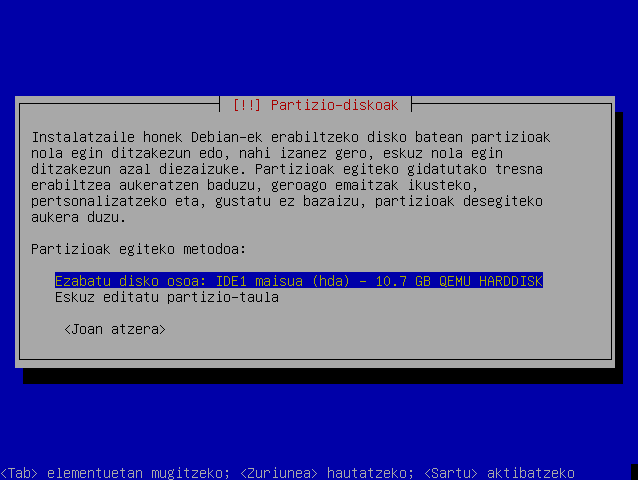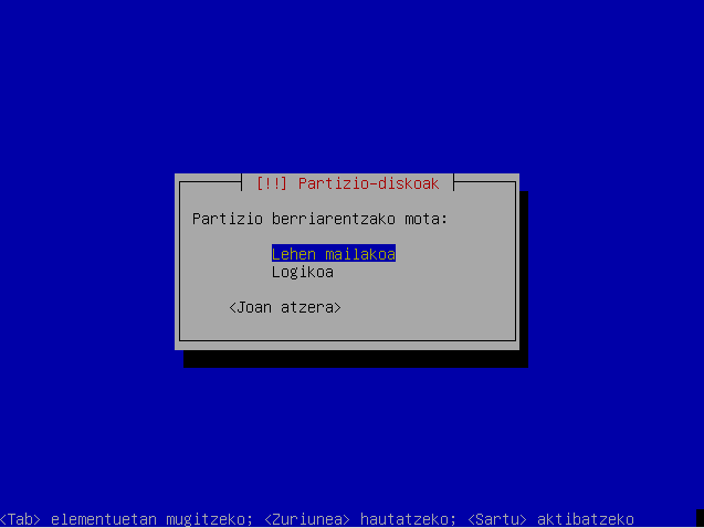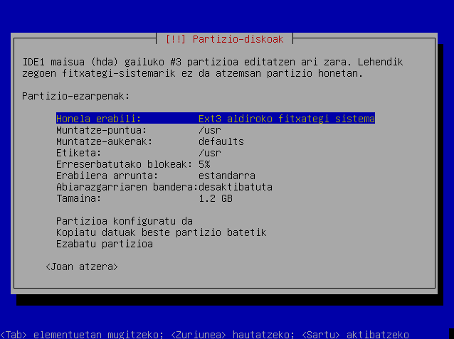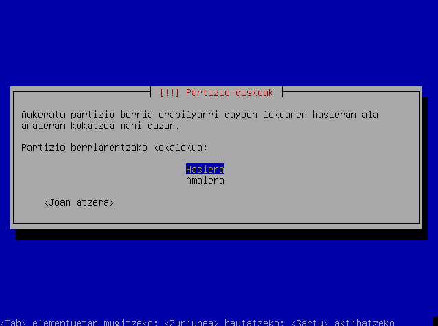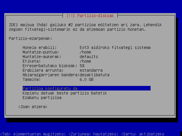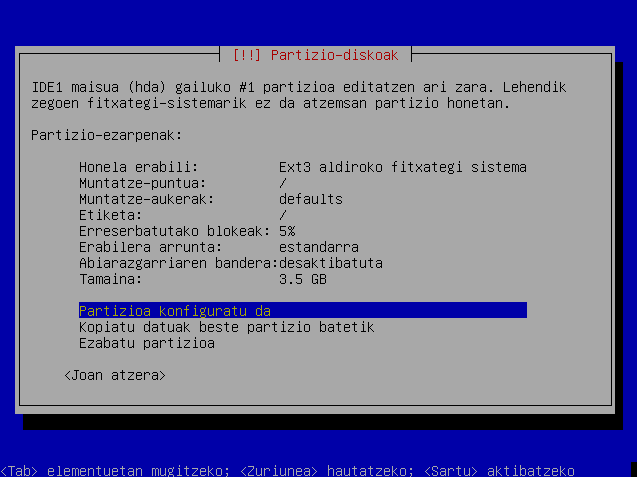 Hautatu "Partizioa konfiguratu da"