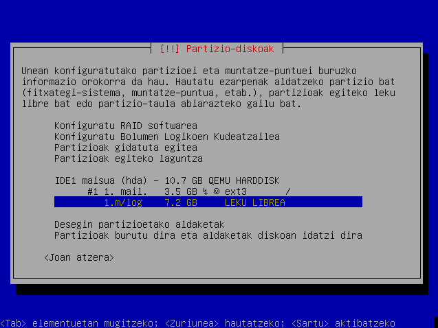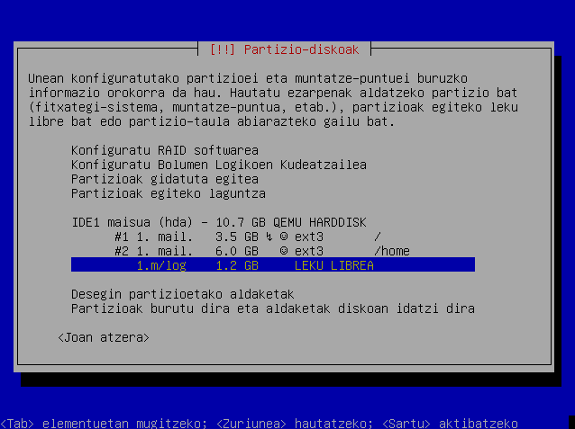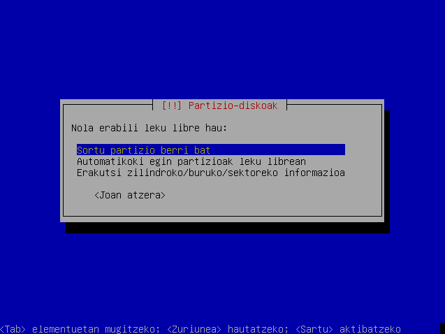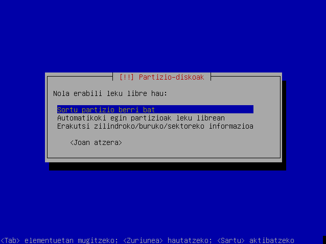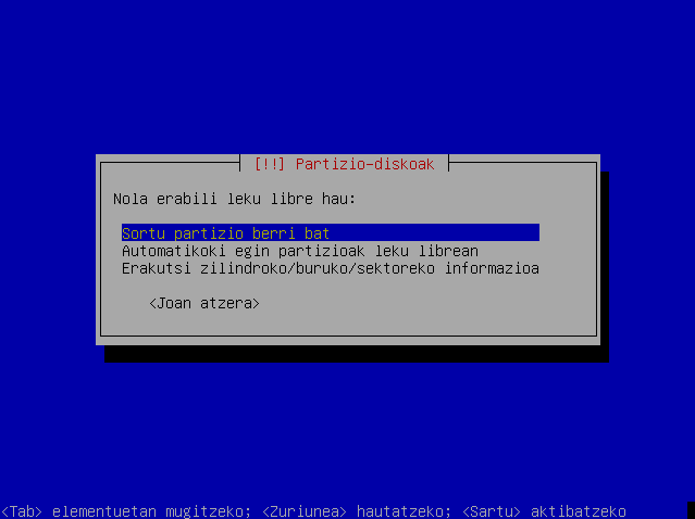 Hautatu leku librea hurrengo partizioa sortzeko eta sakatu Sartu.
