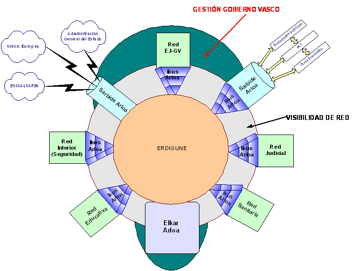 Erdigune garantizará que las únicas conexiones físicas existentes en la red serán las que provengan de las zonas Ikus Arloa, Elkar Arloa, y Sarbide Arloa (Accesos Externos).