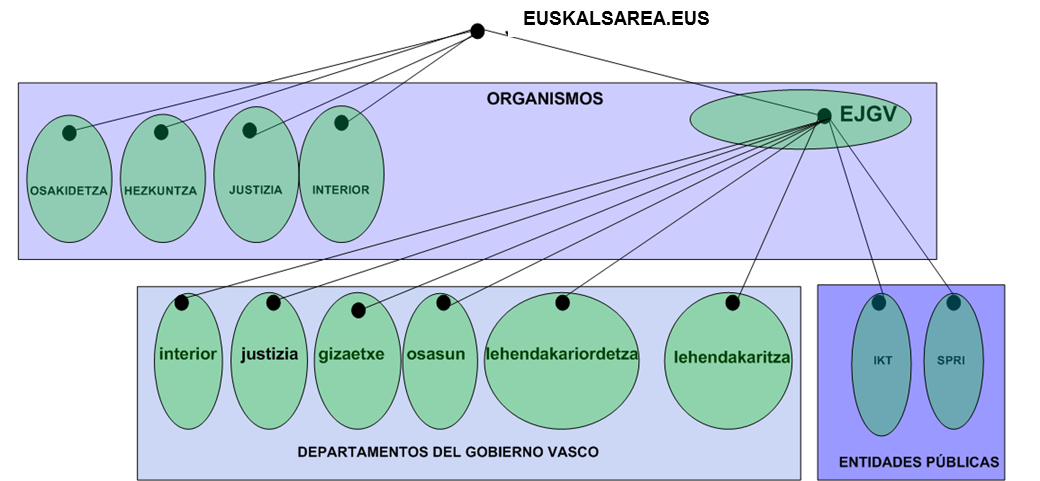 El Departamento de la Organización que brinda el servicio debe identificarse como tercer elemento menos significativo. En el caso del Gobierno Vasco los Departamentos de su organización aparecen en este nivel: