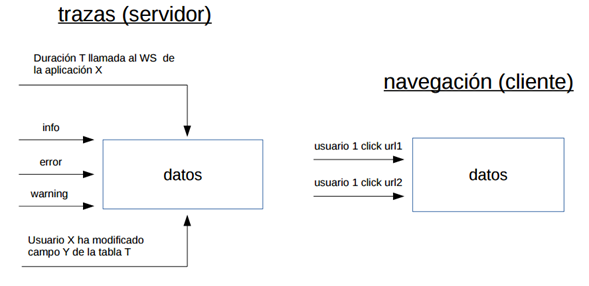 - Datos online: trazas generadas en línea filtradas por usuario, servidor...