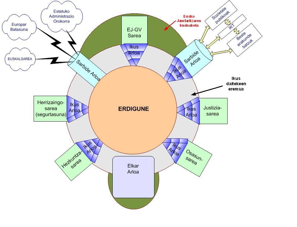 Modu horretan, erakunde bakoitzak Ikus Arloan utziko ditu beste erakunde batzuen eskura jarri nahi dituen sistemak edo zerbitzuak, eta erakundearen informazio-sistemak eta datu-baseak erakundearen beraren sarean geratuko dira, eta ezingo da kanpotik haietara sartu.