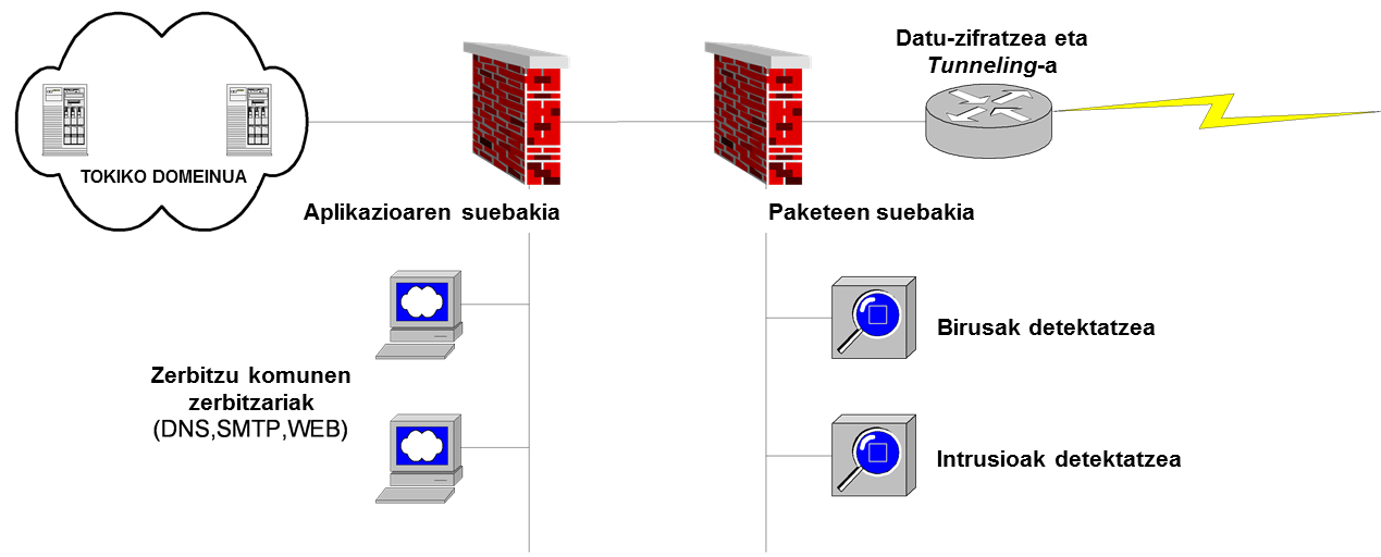 Segurtasunak ideia hau du oinarri: erakunde bakoitzaren barne-sarera (domeinu lokalera) ezin da modu zuzenean sartu kanpotik (beste erakunde batzuetatik), baizik eta Ikus Arloan dauden sistemetatik soilik.