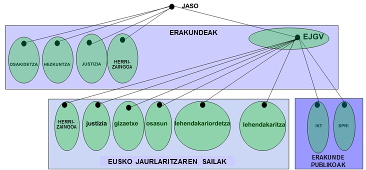 Zerbitzua ematen duen erakundearen saila izango da garrantzi txikieneko hirugarren elementua. Eusko Jaurlaritzaren kasuan, bere antolakuntzako sailak honela agertuko dira: