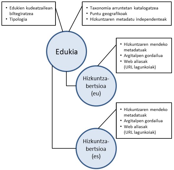 | Informazioaren egitura logikoa | [Eduki bat] hainbat [hizkuntz bertsio] elkartzen duen unitate logikoa da.![]() |