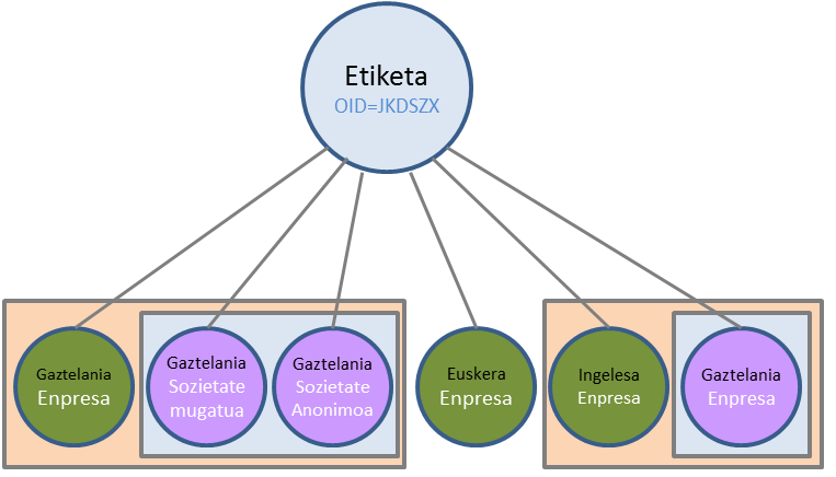 Etiketa bat, esanahirik gabeko identifikatzailea (oid) da; identifikatzaile horren bere atzean hainbat termino gordetzen du, hainbat hizkuntzatan: