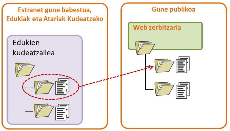 | Argitaratzailea | Gune publikoan kopiatzen ditu [Edukien kudeatzaileak] eta [Atarien kudeatzaileak] barneko gune babestuan sortutako aktiboak (fitxategiak) |