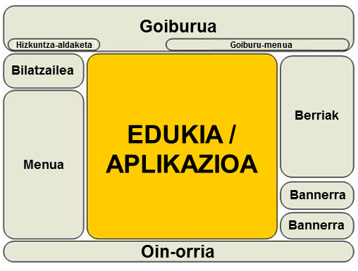 - Atariak kudeatzeko tresnari esker atariko orriak konfiguratu ahal dira: orrien itxura, baita orrien bitartez ikusi ahal diren edukiak edo egin ahal diren bilaketak.